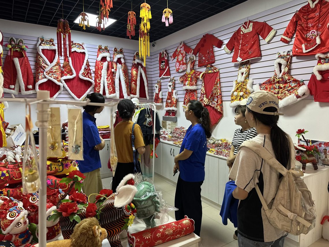 来到刺绣展示区,形态各异、色彩绚丽的刺绣作品瞬间抓住众人目光。传统民俗造型的绣品,将艺术价值与文化内涵精妙融合。成员们借此机会与刺绣传承人王海燕老师深度交流,王海燕老师分享技艺传承故事、创作灵感源泉,还针对大家好奇的针法技巧、图案寓意等内容,耐心且细致地解答,让古老技艺在对话中愈发鲜活。