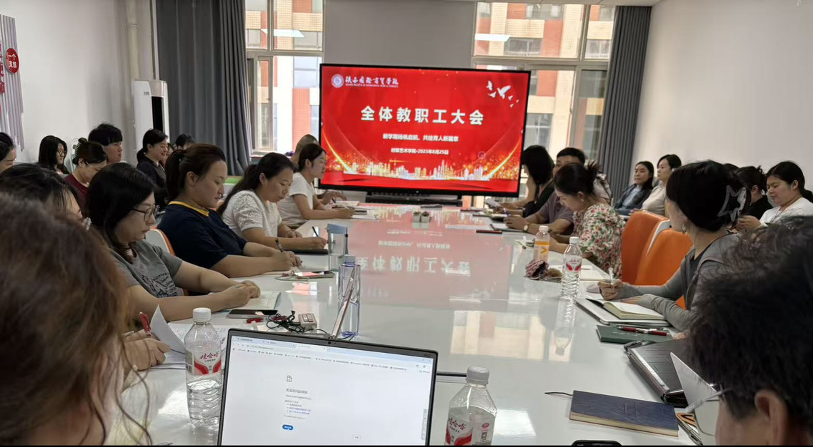 8月25日下午,我院在学院会议室召开新学期全体教职工大会,会议由党总支副书记张雄伟主持,院领导及全体教师参会。会议聚焦新学期重点任务,明确发展方向,为学院高质量发展凝聚共识、提振干劲。