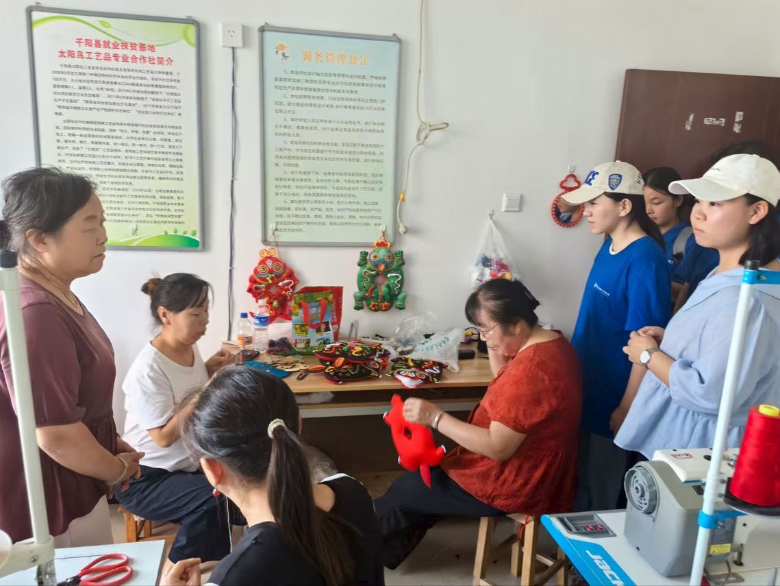 821日,在qy球友会体育官网赴宝鸡千阳社会实践团在侯贝贝、周川渝、寇馨之三位老师的带领下走进千阳县太阳鸟工艺品专业合作社,在传承人李惠莲老师的带领下,深入探寻西秦刺绣的艺术魅力、历史脉络与创新发展,更从中获得了打破创作边界、拓宽灵感维度的深刻启示。