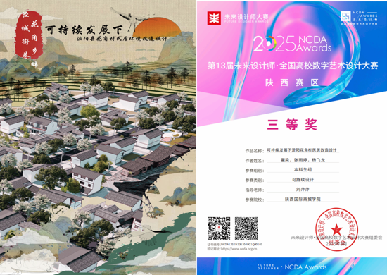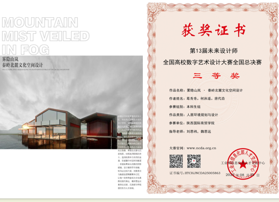 刘思祎、魏思远老师指导学生葛秀秀、何沐遥、唐代浩的作品《雾隐山岚・秦岭北麓文化空间设计》荣获国赛三等奖