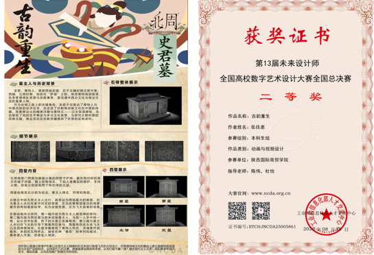 陈伟,杜怡老师指导学生张佳惠的作品《古韵重生》荣获国赛二等奖