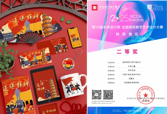 寇馨之老师指导学生牛李乃馨的作品《延安精神文创产品设计》荣获省赛二等奖