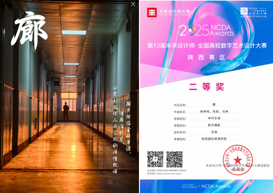 旦瑶老师指导学生杨奉鸣、何英、马坤的作品《廊》荣获省赛二等奖