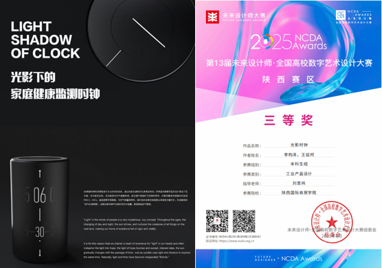刘思祎老师指导学生李昀泽、王延柯的作品《光影时钟》荣获省赛三等奖