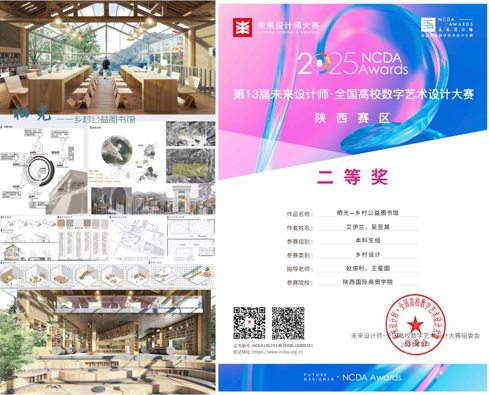赵俊利、王星囡老师指导学生艾伊兰、吴昱其的作品《栖光——乡村公益图书馆》荣获省赛二等奖