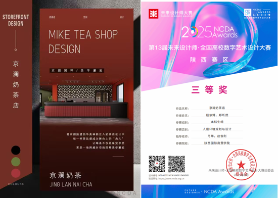弓葶、赵俊利老师指导学生段依博、郑昕然的作品《京澜奶茶店》荣获省赛三等奖