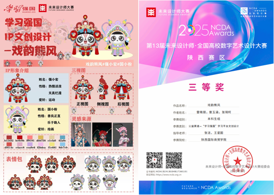 近日,未来设计师·全国高校数字艺术设计大赛(NCDA)顺利收官。未来设计师·全国高校数字艺术设计大赛(NCDA)是入选《全国普通高校大学生竞赛排行榜》,近20家教育厅认定,“学习强国”学习平台支持,对接联合国国际赛的全国性大学生竞赛。大赛始于2012年,每年举办一届,已连续举办12届,为艺术设计领域的高水平知名赛事,是高校积极参与的重要竞赛之一。竞赛采用“校赛-省赛-国赛”三级赛制,设立“非命题”、“产教融合/创新创业“、公益和“实践挑战”赛道,内容有AIGC、乡村设计、可持续设计、未来设计、国潮·非遗设计、视觉传达设计、动画与视频设计、交互设计、人居环境规划与设计、工业产品设计、时尚设计、虚拟IP及表情包设计、造型艺术、文创产品及城市IP设计、数字摄影、数字音乐、教学案例等。